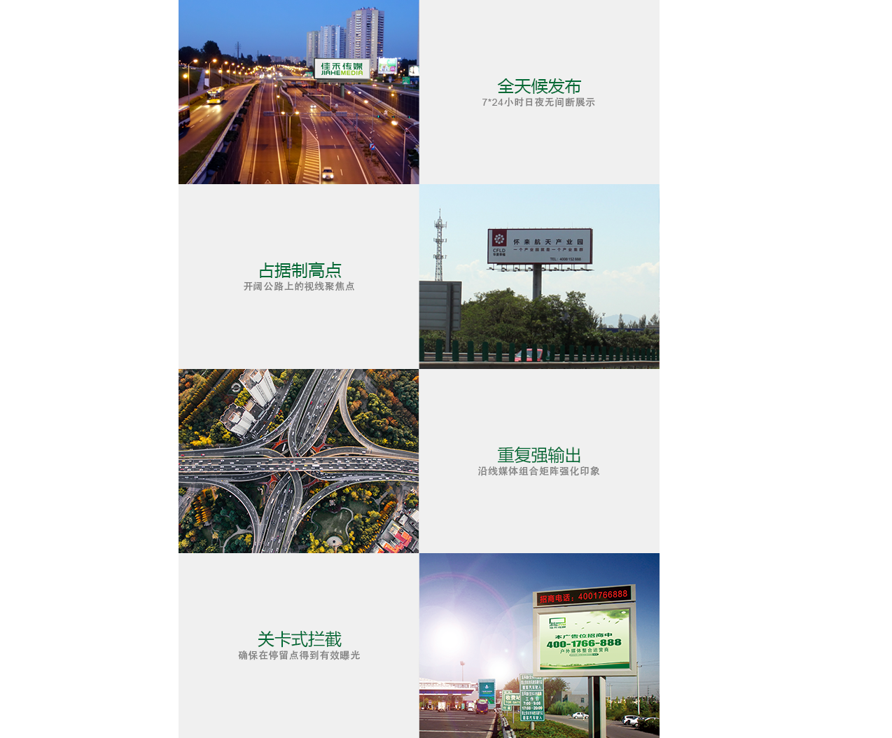 高速媒體輻射全國(guó)各大主要高速公路及環(huán)線(xiàn),媒體包括單立柱、燈箱、收費(fèi)站棚、跨線(xiàn)橋、LED屏等多種形式,